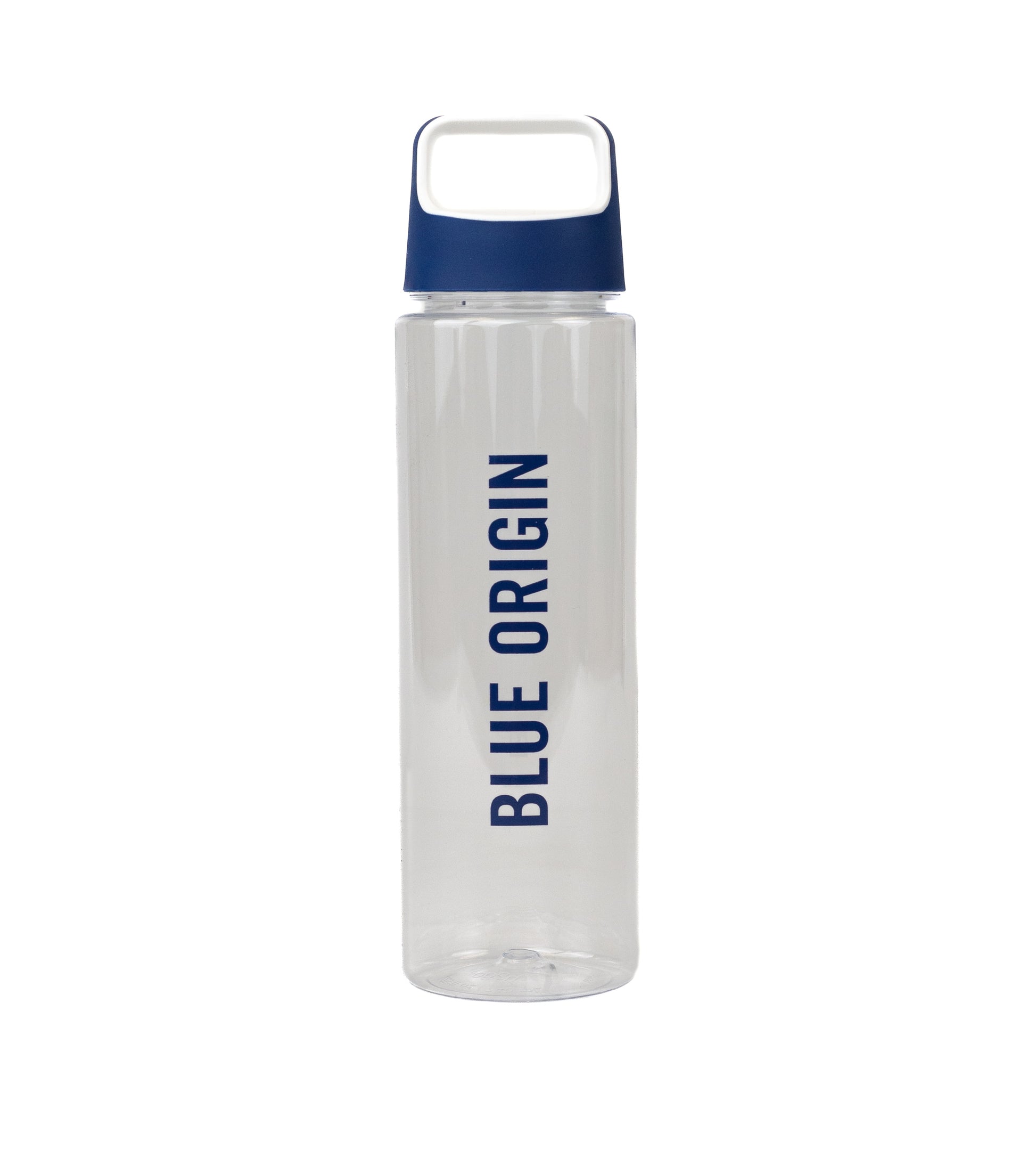 25oz single wall BPA-Free bottle. Blue & white threaded lid with carry loop. Blue
