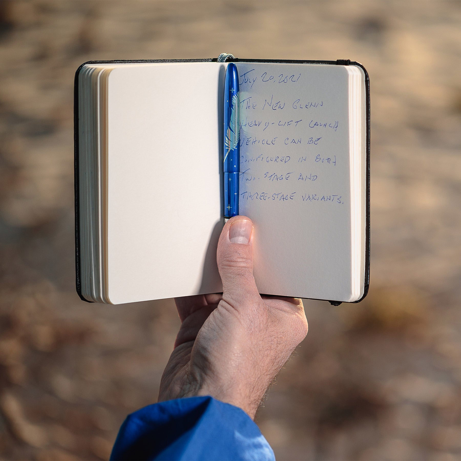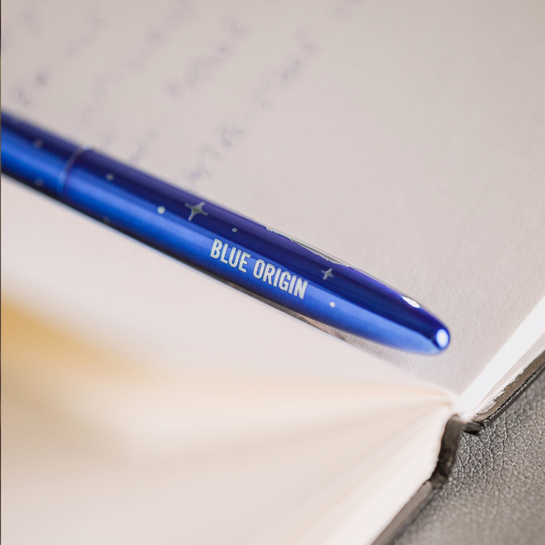 Inspired by the perfection of flight, the Blue Moon Bullet Space Pen features a vibrant blue translucent finish, calling to mind the numerous mysterious and dark blue nebulae in our vast galaxy. The widespread popularity, appeal, and color of the Blue Moon Bullet Space Pen featuring a laser engraved chrome feather symbol is a perfect complement to Fisher Space Pen’s new affiliation with Blue Origin.