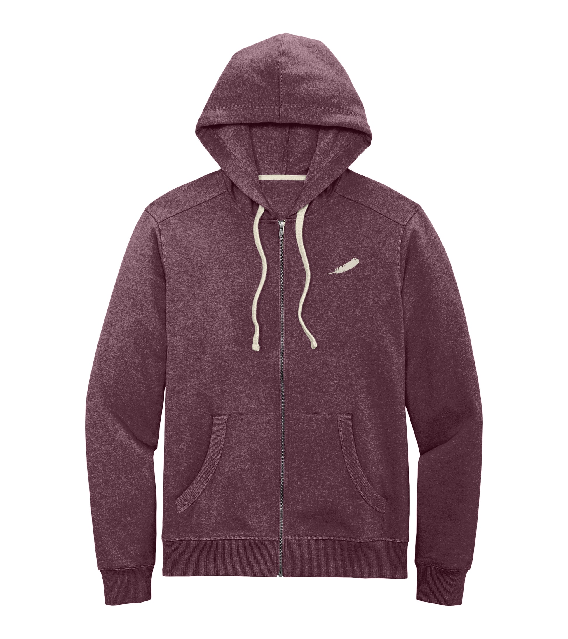 Full-zip hoodie with embroidered feather on left chest. Features contrasting drawcords, front pouch pockets, and rib knit cuffs, pocket openings and hem. Made of 60% recycled cotton and 40% recycled polyester. Sustainable manufacturing. Gender neutral fit.