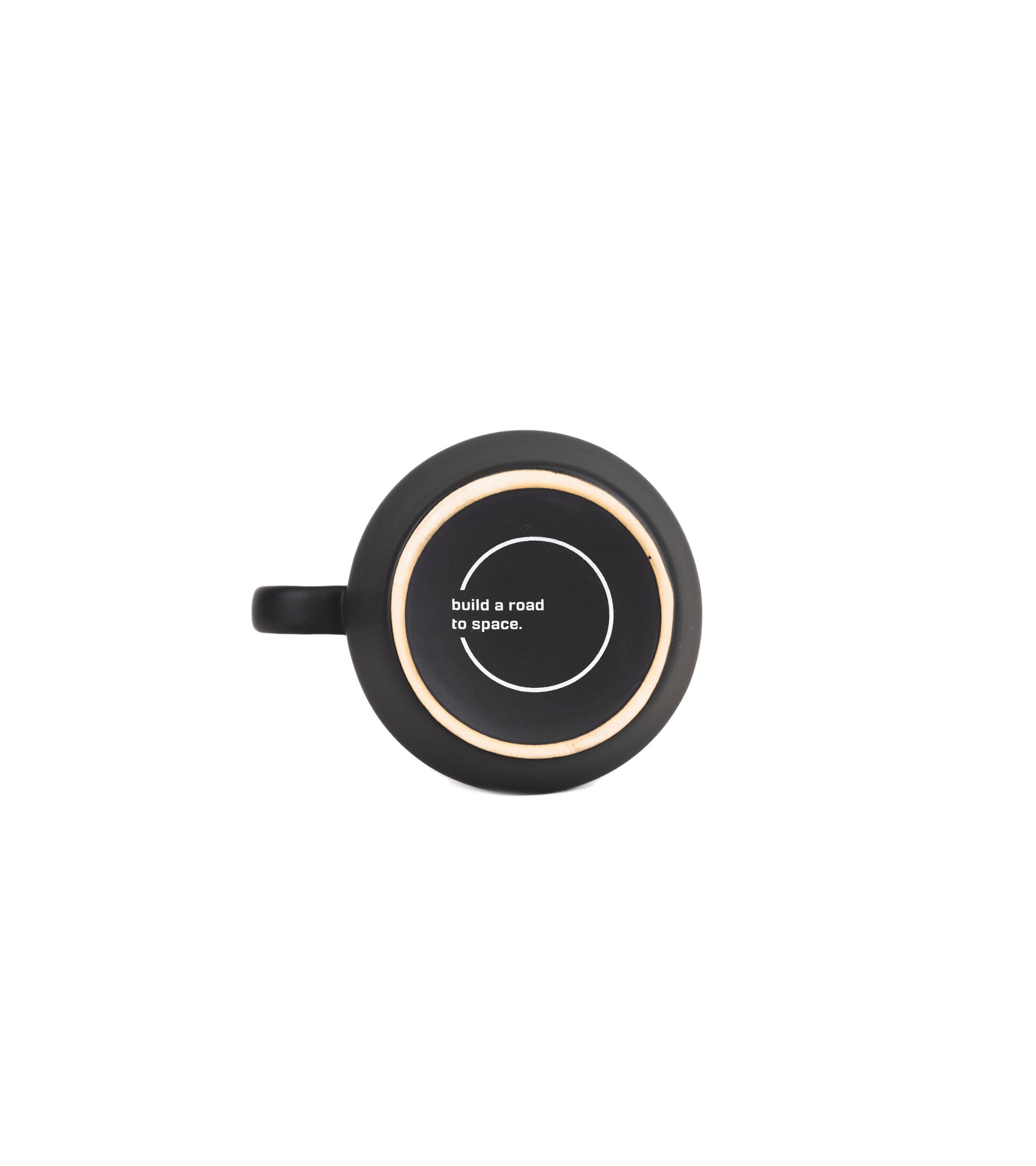 16oz matte black mug with New Glenn on the front and build a road to space on the bottom.