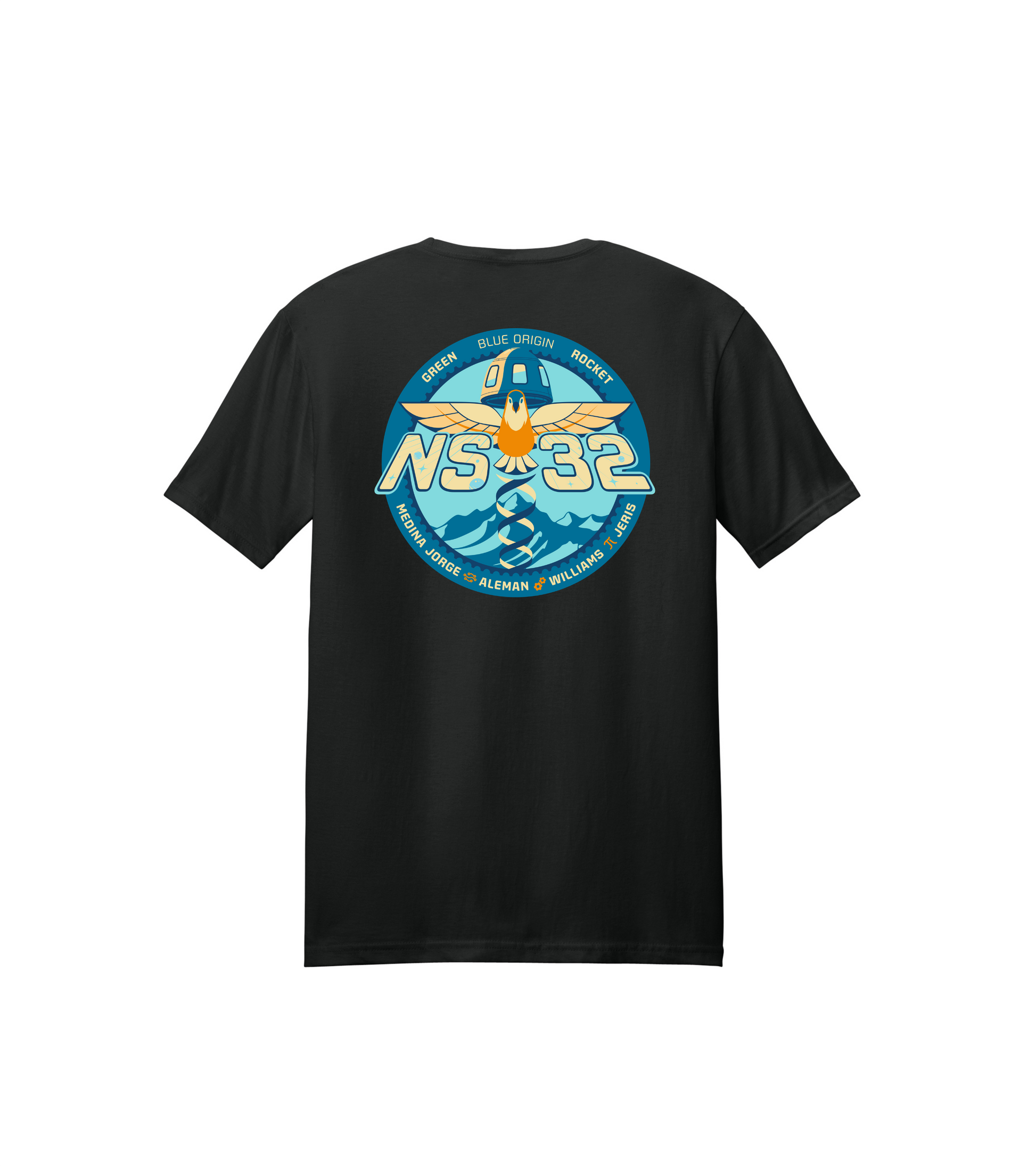 Soft, cotton tee with New Shepard on front and NS-32 graphic on back. Gender neutral fit.
