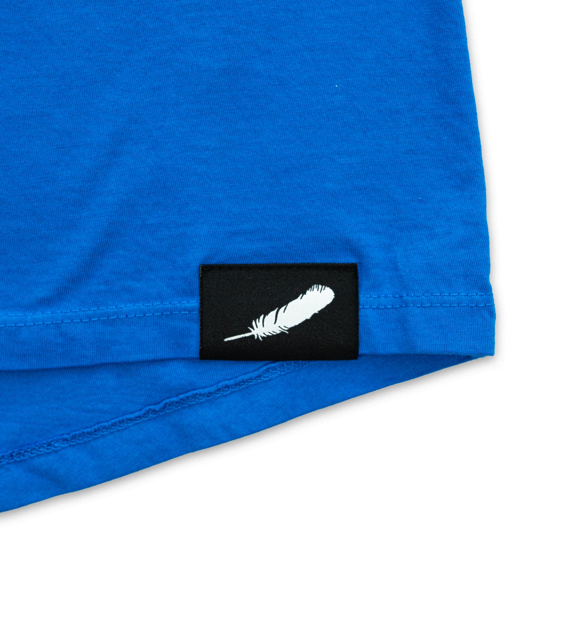 Soft crew neck tee with Blue Origin on front and feather tag on bottom left hem. Made of 100% ringspun cotton. Women's fit.