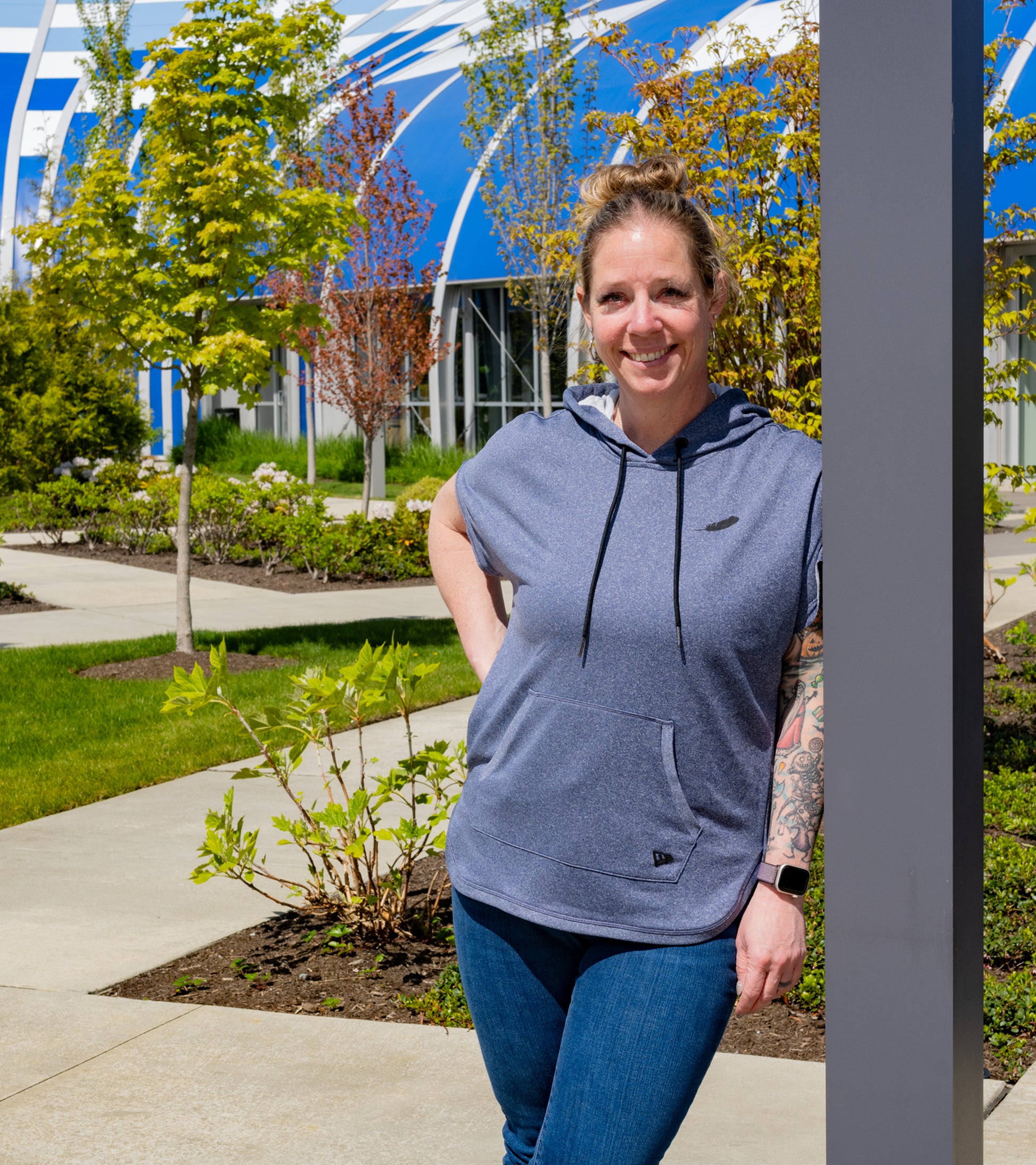 New Era performance hoodie with retro athletic look. Features feather on left chest, a front pouch pocket, dolman sleeves, and a drop tail hem. Made of 100% polyester French terry. Women's cut.